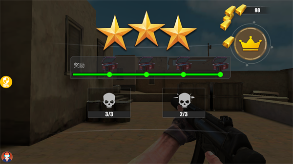 2、短时间内击败三个人即可达成三星条件。