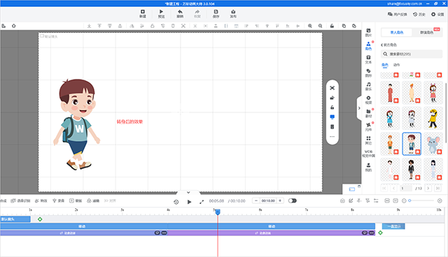 表情多样,种类繁多的动静态动画角色 (Flash, PNG 和GIF),增加动画视频的趣味性跟互动性,帮助您清晰的表达想法,生动形象的传递信息,让微课视频,企业宣传片更加简单易懂,清晰明了。