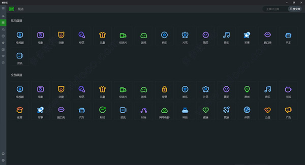 4、点击左边的常用频道,分为电视剧,电影,动漫,综艺,儿童,纪录片,游戏,娱乐等;