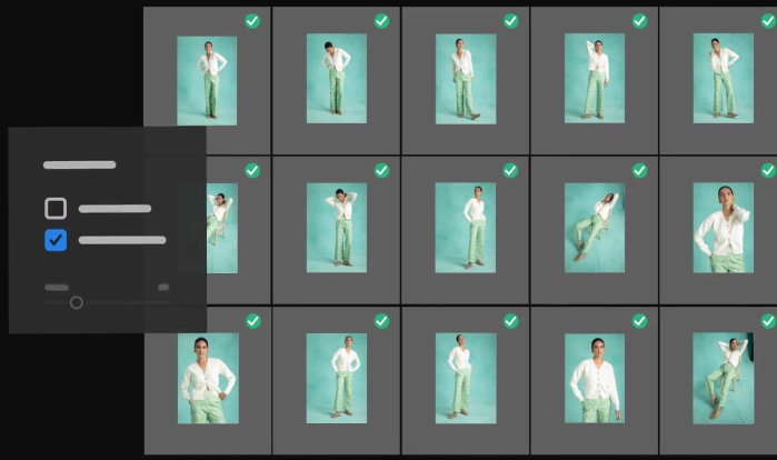 借助"辅助剔选"功能,高效挑选最佳人像照片。根据主体聚焦、眼睛聚焦、睁眼等筛选条件,快速找到最佳图像。现已在"库"和"导入"窗口中作为"抢先体验"版开放。