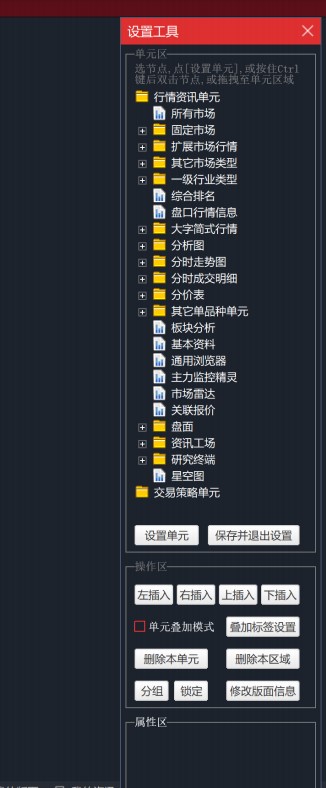 在版面页面,不仅可以使用客户端默认的版面功能,还可以自定义版面,点击”新建”版面的按钮可以进入到自定义版面的页面。此页面可以选择节点自定义设置单元。