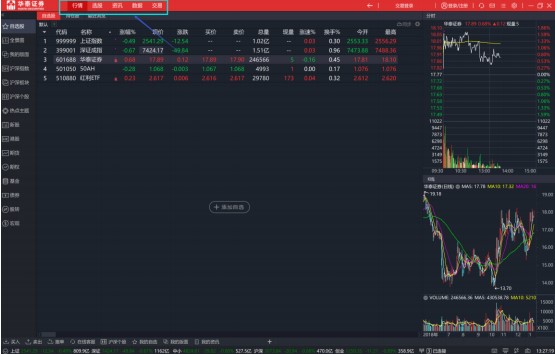 网上客户端高级版即以前的通达信 PC 版,经过了全新设计改版,成为了现在的网上交易客户端(高级版)。高级版的功能导航在顶部,分别有行情、选股、资讯、数据和交易五大模块。
