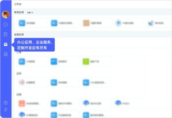 5、点击百宝箱按钮可以对办公常用功能和全部应用进行操作