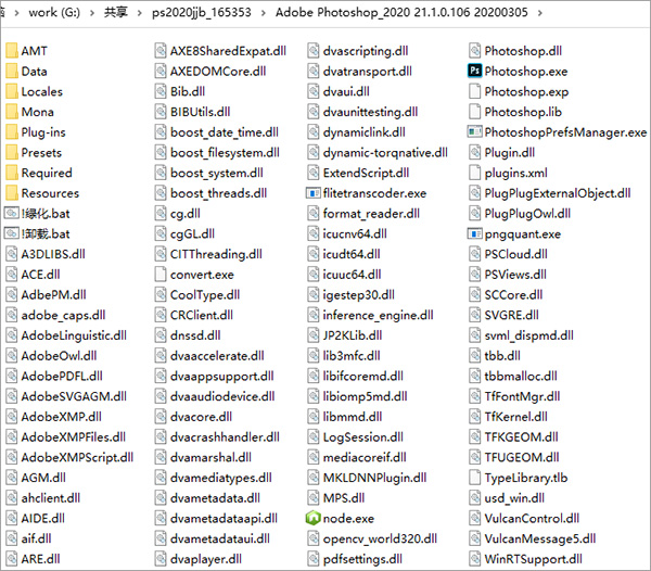 1、下载解压,得到photoshop2020绿色便携版,首先运行“绿化.bat”文件;