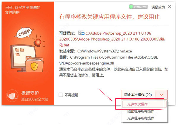 2、软件绿化过程中,如果你的360安全卫士弹出提示,请允许,否则可以会激活失败;