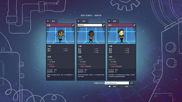 首先游戏提供3名人员(复制人)供玩家选择。3人初期所分布的工作其实只有两类,一是发电、二是挖掘。
