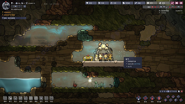 当殖民地规模扩张至占整个地下世界的1/10,大概占据3层楼的时候,你可以开始制造氧气制造机。虽然都是制氧机,但注意不是“藻类制氧机”,藻类制氧机是需要消耗电力和藻类(需要收割),而氧气制造机则是透过研发得到。