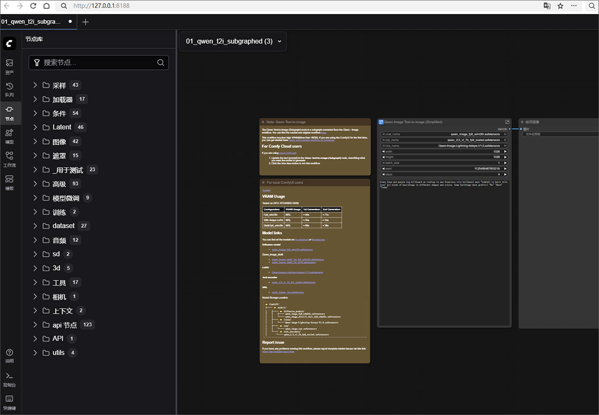 6、浏览器打开:http://127.0.0.1:8188/