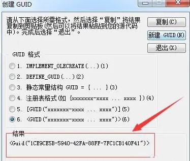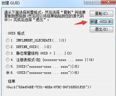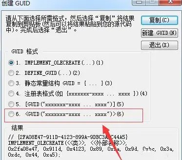 3、这样就会弹出了一个创建guid的窗口的界面当中,进行点击第六个中。