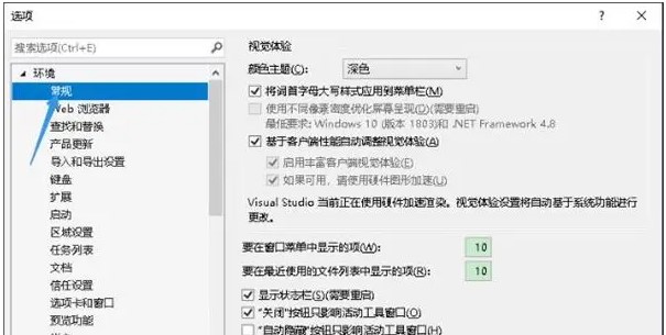 3、进入到选项窗口中,点击环境选项下的常规选项,来进行相关的设置操作。