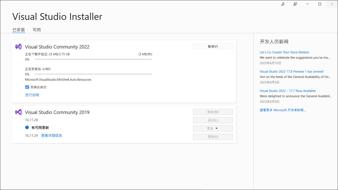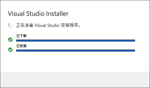 下载引导程序后,运行它以安装 Visual Studio。 它将首先安装,然后启动最新版本的Visual Studio 安装程序,你可以使用它来自定义和配置安装、下载安装包和安装产品。