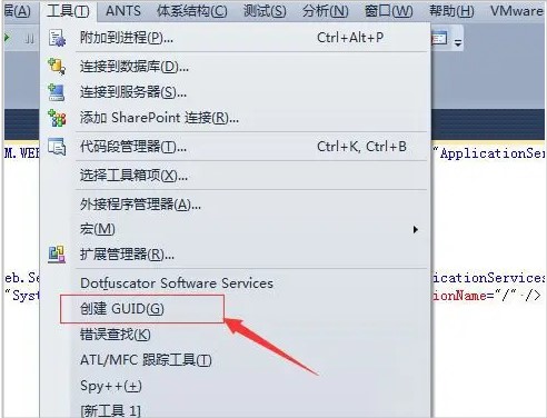2、进行点击了工具的菜单中之后,弹出了下拉菜单中选中为“创建guid”的选项。