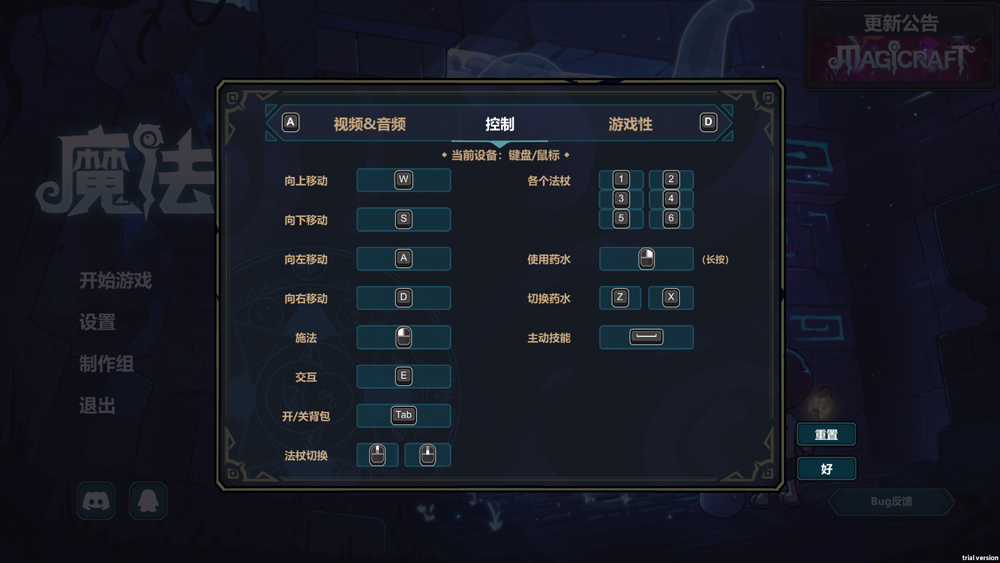 3、游戏采用动作肉鸽玩法,键盘控制WASD角色移动,鼠标左键控制角色攻击;