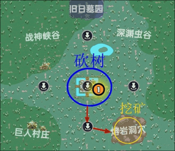 1、材料各准备1万,先在安全区附近砍树,后去右下角熔岩洞穴挖矿。