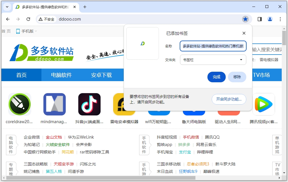 5、这样我们就可以不用每次访问时都进行搜索了,直接点击就可以进入网页了,后续如果不再需要收藏该网页,可以单击右上角的五角星图标后点击“移除”。