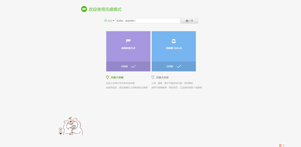 成功打开无痕浏览模式,用户在此页面浏览的网页将不会存入缓存,关闭后即消失