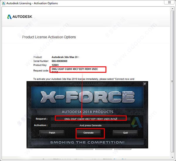 8、复制request并粘贴上去,先点Patch,再点Generate,并把Activation粘贴到激活界面。一直下一步即可;