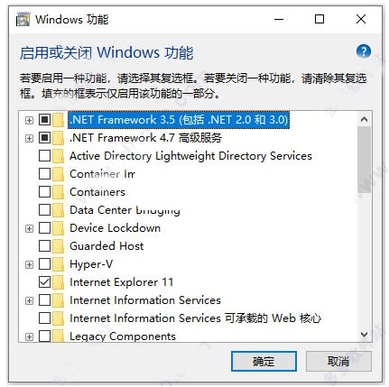 2、首先安装必装的组件NET Framework 3.5/4.0组件,也可以打开控制面板->程序->启用或关闭Windows功能中,勾选NET Framework 3.5,Windows会自动下载安装;
