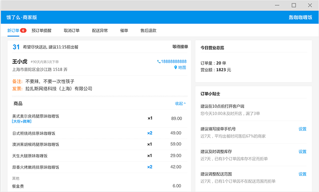 使用淘宝闪购网络餐饮管理系统处理订单,减少人工劳动,及时高效,为您店铺的发展扫清障碍。