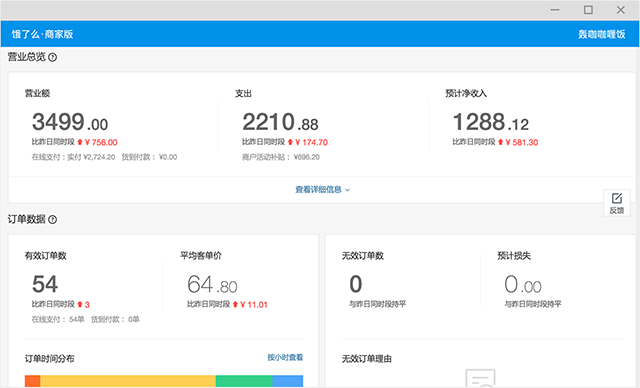 提供经营数据的深度分析包括营业统计、商品分析、评价查询等
