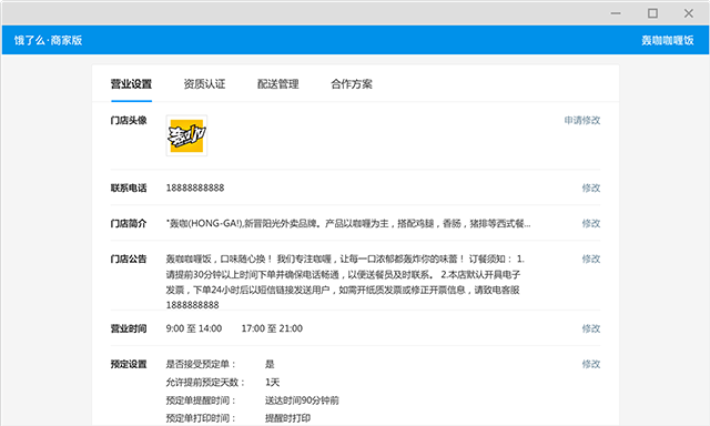 餐厅信息即时设定,随时更新随时开关店,无需任何成本