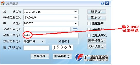 则帐号本次登录系统的动态密码为:“8963”。此时在登录界面上输入“8963”,完成系统登录。