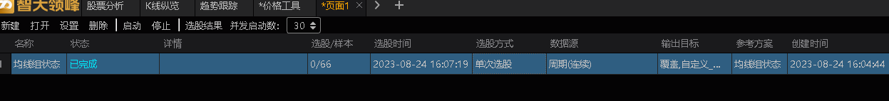 我们运行两个任务。选中第二个任务,点击上方选股结果,可以查看选股结果。