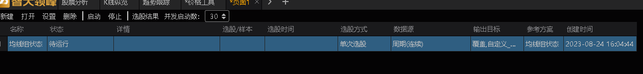 选股方案点击选中,会显示在页面中,为待运行状态。