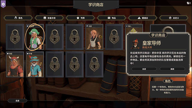 在主界面点击学识商店即可进入查看特色物品和人物