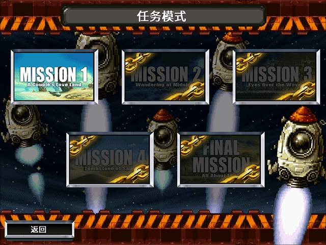 第五关中头目 --- 飞船 第一阶段有两种追踪飞弹 一种是冲天炮型 , 会到处乱窜 一种就是纯追踪 , 打掉就好 还有放下一堆跳跳弹 , 随机数在画面上跳 看清楚就不难躲 第二阶段会请出越南大战一代的头头狂妄的军人 会枪机连发 , 快速的丢手榴弹 只要行动够快就不会被打中 注意的是 , 在空中飞的时候 "后退" 这个动作是很慢的 上下移动还好 (不过会被打中) 往前冲最快