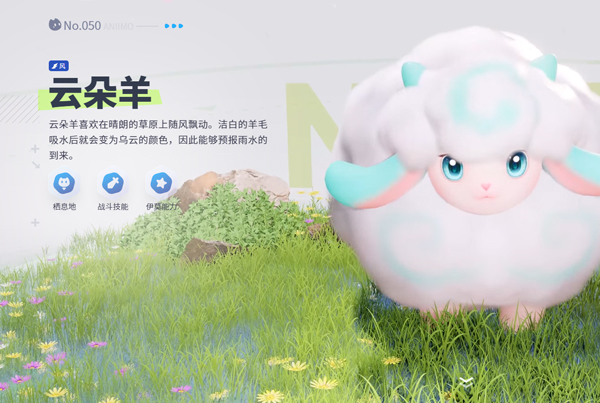 云朵羊喜欢在晴朗的草原上随风飘动。洁白的羊毛吸水后就会变为乌云的颜色,因此能够预报雨水的到来。