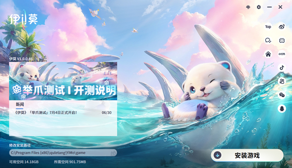 2、安装完成后打开,选择游戏资源安装路径后安装游戏;