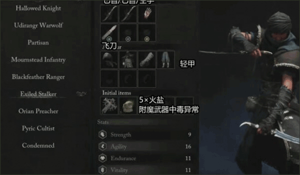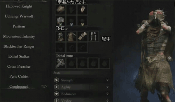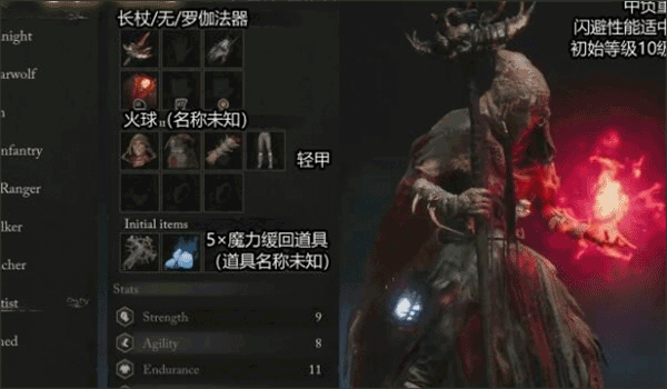 包括骑士、游荡者以及见习火法师在内的9种初始角色职业供你选择