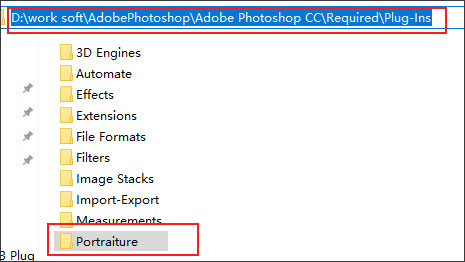 比如小编的是pscc版本,路径是【D:\work soft\AdobePhotoshop\Adobe Photoshop CC\Required\Plug-Ins】