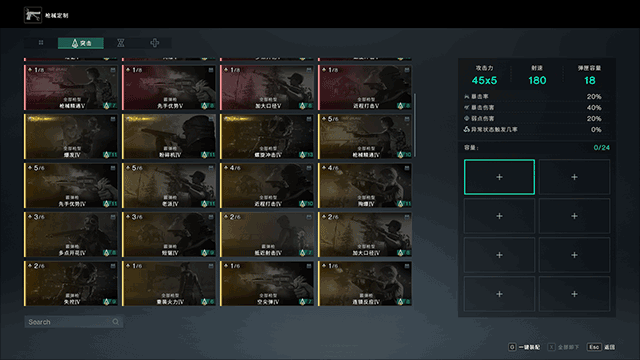 一把武器的下限是由其自身决定的,而上限取决于你的创造力,每把枪都有可替换的零件,通过探索世界和完成任务,你可以获得各式配件,或许是倍率更高的瞄准镜,或许是消音更好的枪口,抑或是装弹量更大的弹匣,通过调整配件来制作拥有完美手感的武器吧!除去配件的支持,每把枪在被制作出来后还可以对其在某些方面进行精校,可以反复提升其该方向的强度。