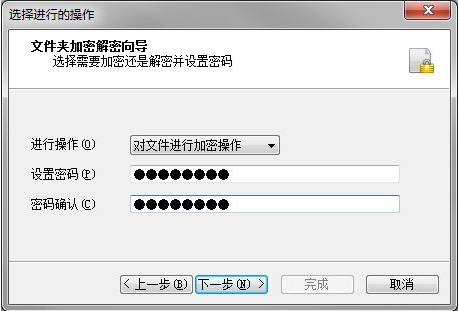 4、第三页,选择您要进行的操作,设置加密或者解密的密码,并确认密码。