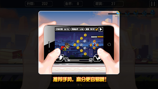 1、根据同名电影改编而成的跑酷游戏。2、炫酷的美式画风,花样道具武器,全新的踏板操作,颠覆传统跑酷玩法。