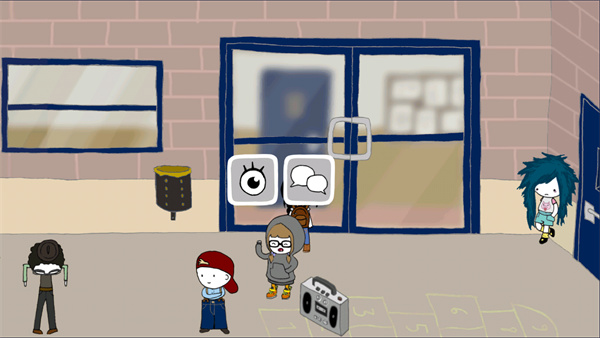 1、点击开始游戏,点击走到人物身边,点击这个小朋友可以看她在干什么或者与她对话;