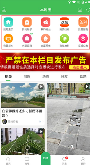 4、点开圈子,可以查看垫江本地的各种有趣的视频、帖子、动态等;