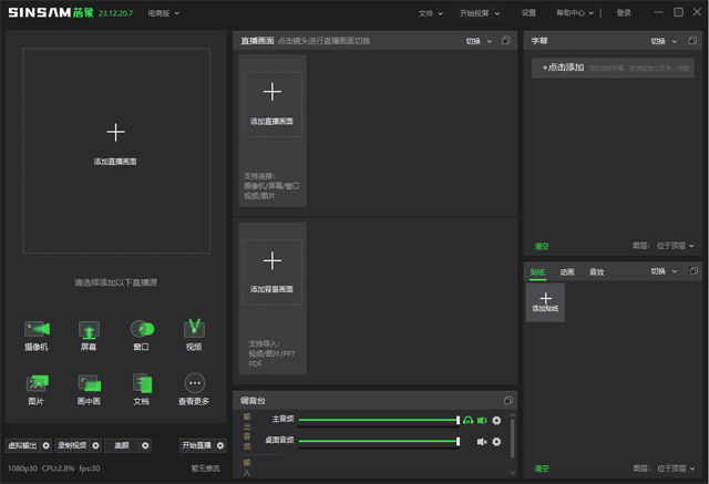 5、酷炫字幕,直播动态/静态字幕实时制作,添加快速字幕制作及导入psd文件快速生成字幕。