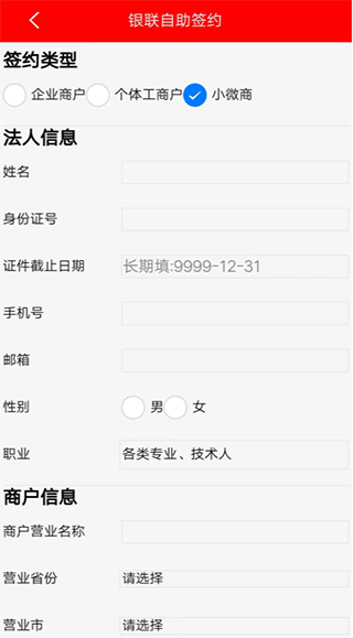 4、填写:银联自助签约 ,之后点击【提交】,等待审核