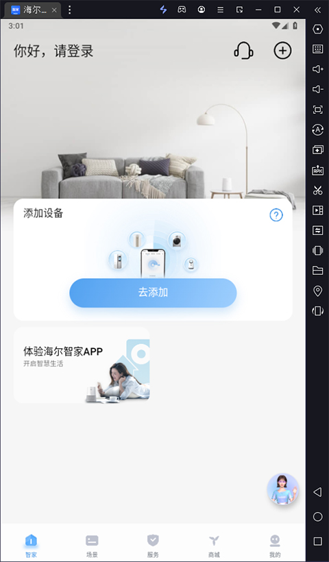 1、首先用户将在本站免费下载的海尔智家电脑版安装包在电脑上的安卓模拟器中安装,然后打开进入到软件界面以后,点击“智家”