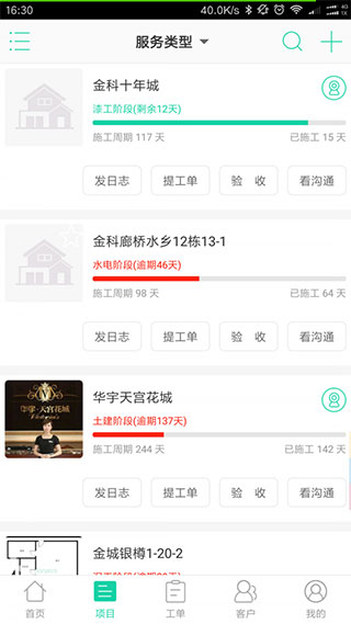 1、在建工地管理高效管理正在进行的在建工地,工地各个阶段一目了然。工地都可以发工单,改进度,发装修日志等。