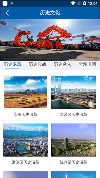 6、在魅力宝鸡中,用户可以全方面的了解宝鸡市,如历史文化、宝鸡发展、宝鸡市情等等。