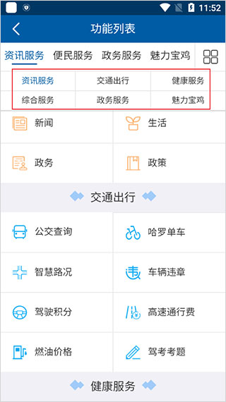 4、为宝鸡市民打造智慧城市生活、让用户享受方便快捷的生活体验,包含宝鸡区各大新闻媒体、生活服务等功能。