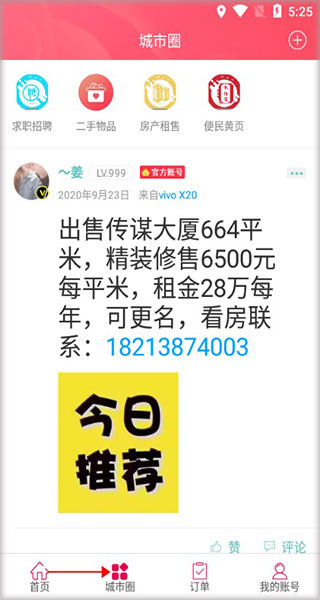 4、右划进入城市圈,玩家可以在这看到求职招聘,二手物品,房屋出租等信息。