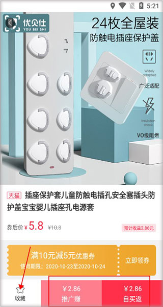 3、左下角更有收藏标志,当用户资金不够想下次购买,点击收藏即可;