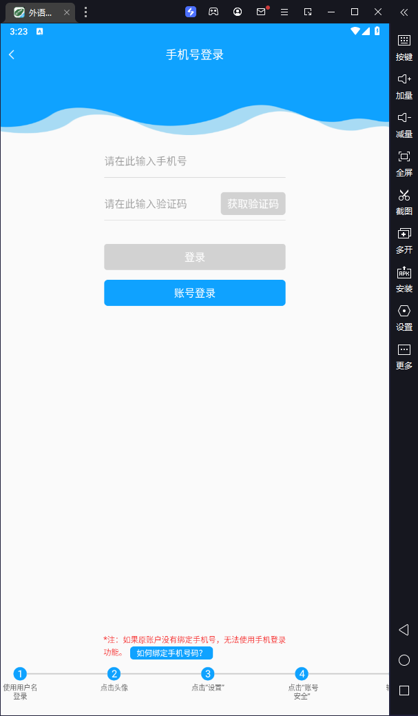 2、若为学校统一发放的体验账号,账号格式为:学生姓名+班级码,默认密码为123456。