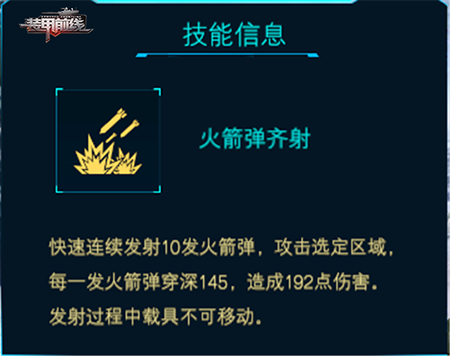 TOS-1自行火箭炮在游戏中,作为游戏中的第一辆自行火炮。它可以在较远距离就可以向敌人发射5连发燃烧弹,飞弹接近目标时爆炸,将高能燃料喷洒到目标附近,从而形成一片火海。