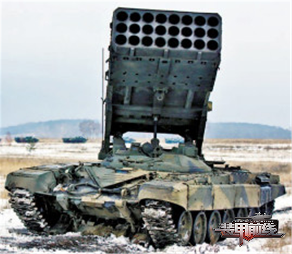 苏联TOS-1是在T-72主战坦克基础上开发研制的,实际上是一种大口径、多管数、大威力自行火箭炮,将原125毫米炮塔更换为一个带装甲瞄准器的双人炮塔,为电动式可任意旋转升降,由4层共30个220毫米火箭发射管组成,威力之大可想而知。其火控系统由瞄准具、测距仪、弹道计算机和稳定器组成,可大大提高射击精度。